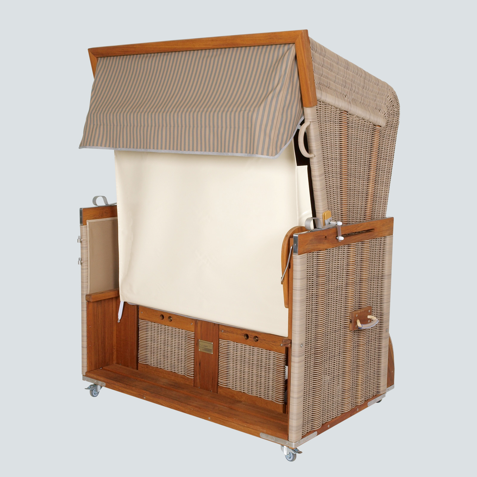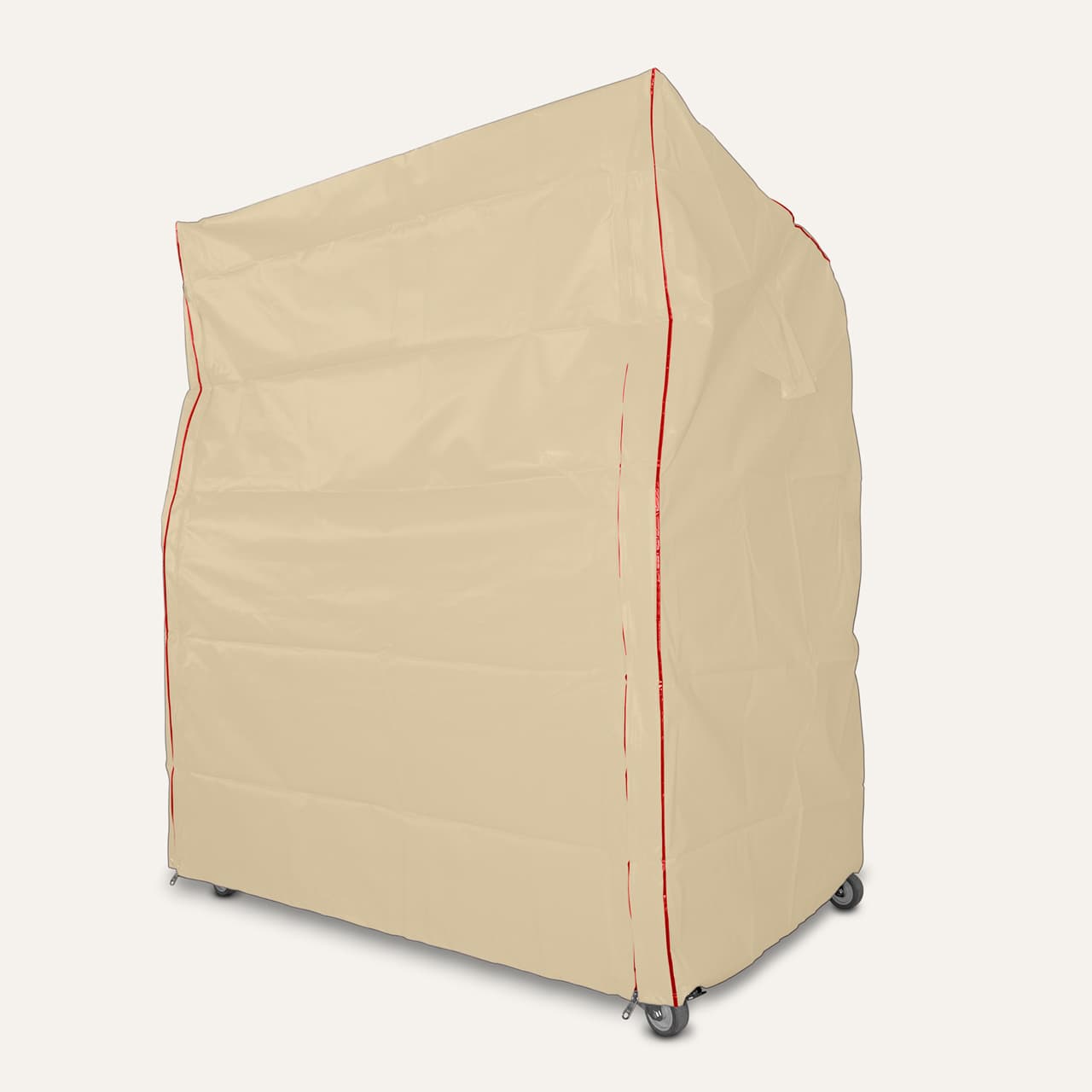 Damit Ihr Strandkorb lange schön bleibt und gut gepflegt wird, empfehlen wir Ihnen, ihn vor Feuchtigkeit zu schützen. Hierfür bieten wir besonders robuste Schutzhüllen an. Bei schönem Wetter können Sie auch einfach unsere unter der Markise angebrachte Frontplane herunterlassen, um den Strandkorb vor Staub, Schmutz und auch vor Katzenbesuchen zu schützen.